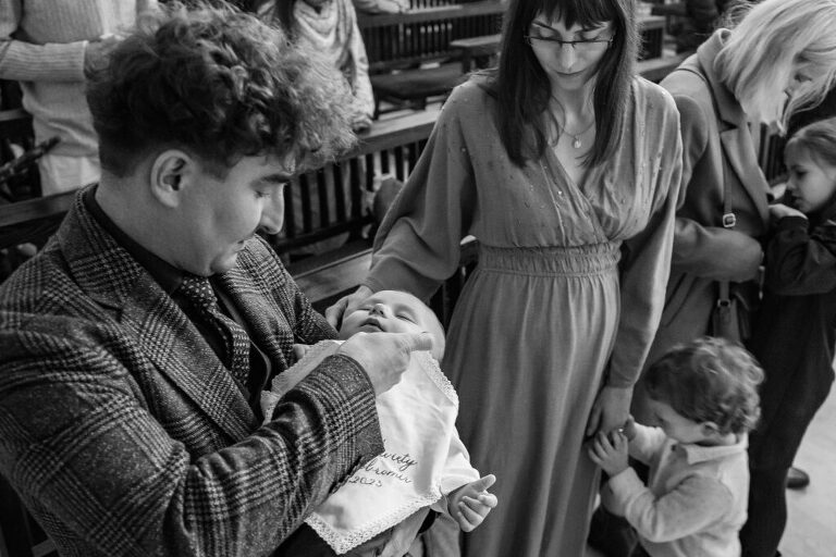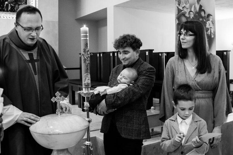 Fotografowanie rodzinnej uroczystości u kumpla-fotografa jest niemałym stresem 😀 Zwłaszcza, kiedy ten kumpel jest świetnym fotografem (www.michalwasik.pl). Ogromnie ucieszyłam się z możliwości stworzenia tego reportażu z uroczystości Chrztu Świętego w klasycznej czerni i bieli, bo nawet fotograf z wieloletnim doświadczeniem rzadko dostaje zielone światło dla takich projektów. Z chęcią zrealizuję kolejne takie wyzwania 😉 Jeśli chcesz powierzyć mi uwiecznianie ważnych chwil z Twoim maluszkiem, zapraszam Cię TU. Alu, Michale – dziękuję, że mogłam z Wami być! <3