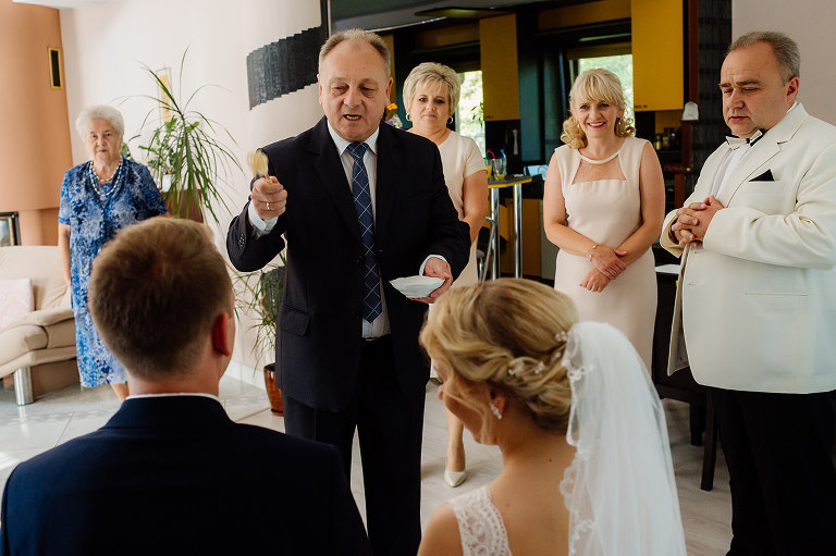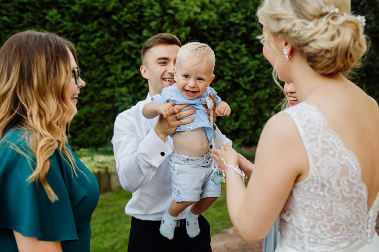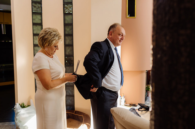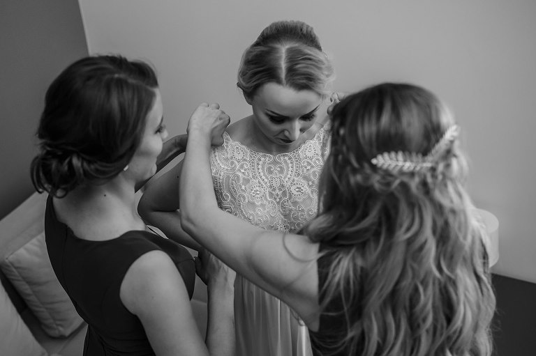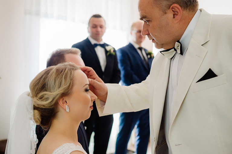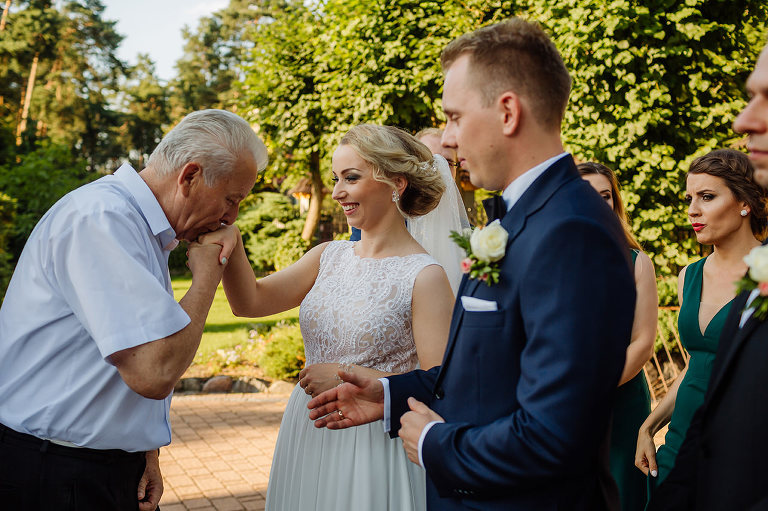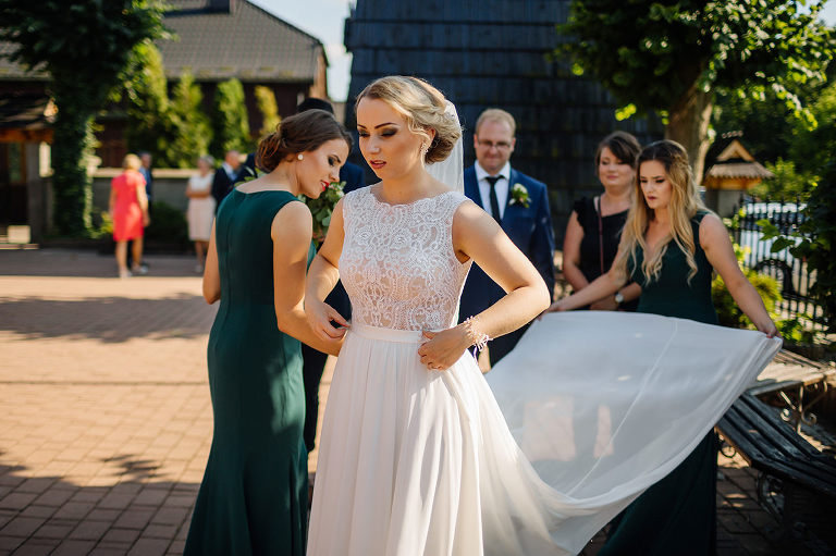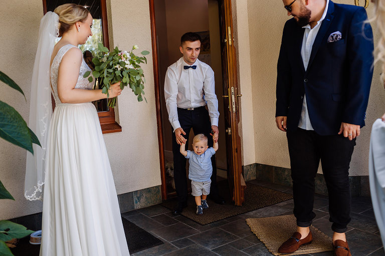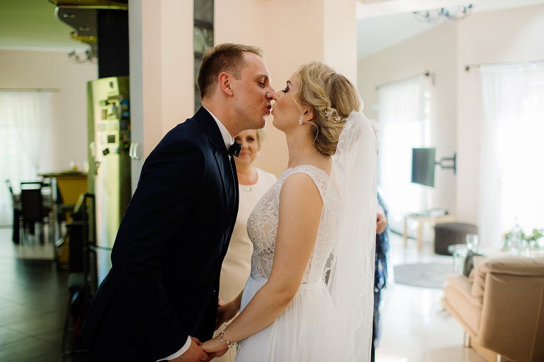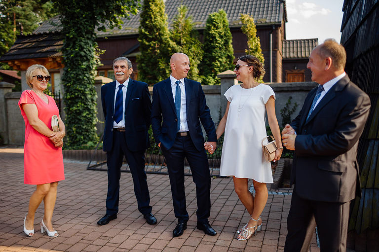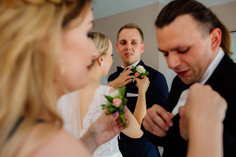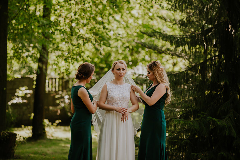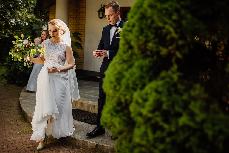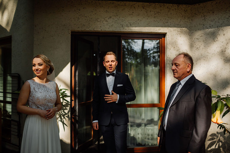 Ślub Oleńki i Konrada miał miejsce w przepiękny, słoneczny, sierpniowy dzień. Narzeczeni byli w wyśmienitych nastrojach, Konrad, który wkroczył do domu swoich przyszłych teściów tanecznym krokiem, nieustannie wygłupiał się i żartował. Przygotowaniom towarzyszyły cudne uśmiechy przyszłych nowożeńców, czwórki ich świadków, rodziców i rodzeństwa. Nie mogłam odmówić sobie przyjemności wykonania krótkiej sesji w przepięknym ogrodzie rodziców Oli.