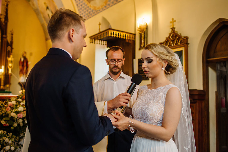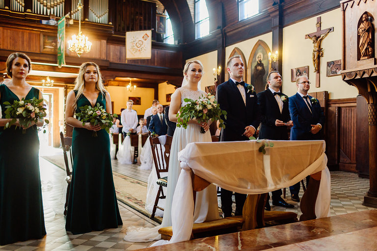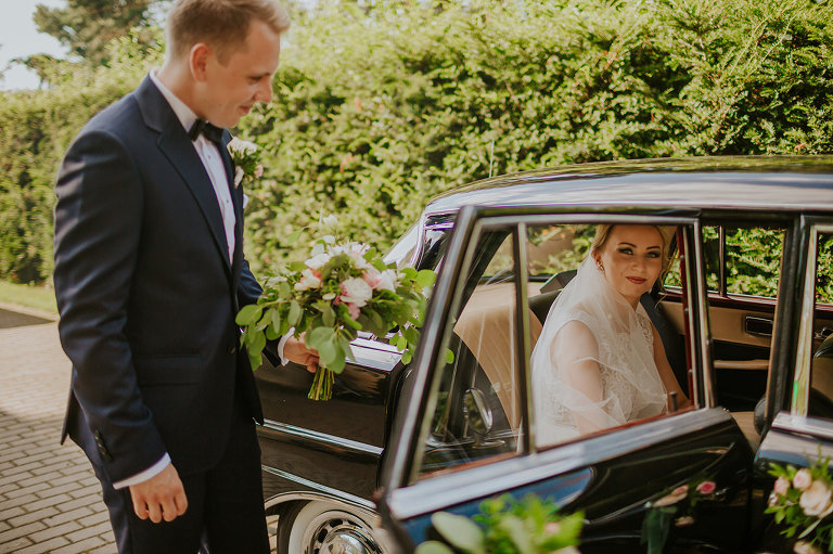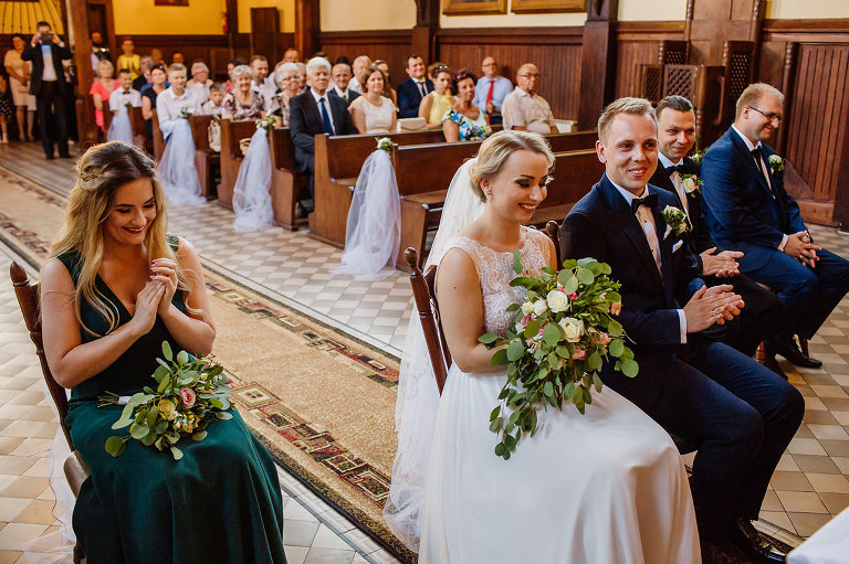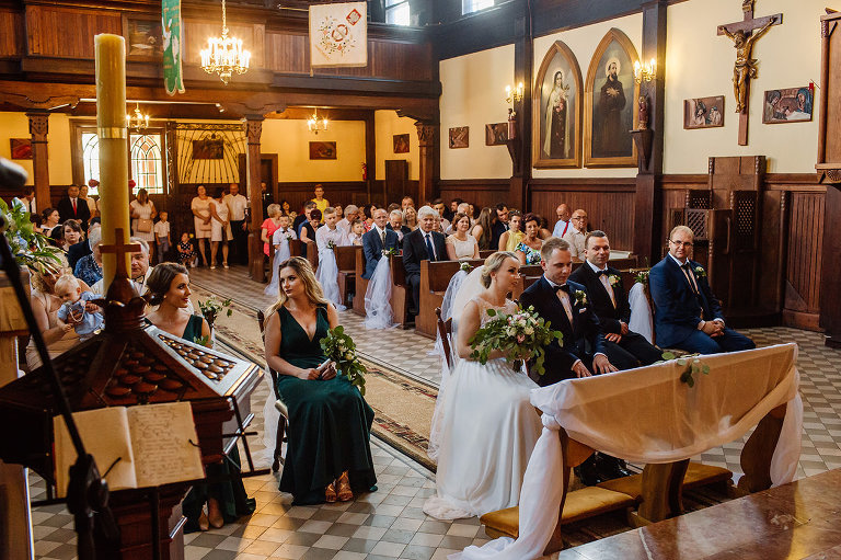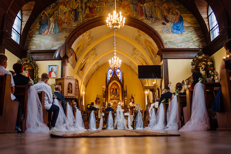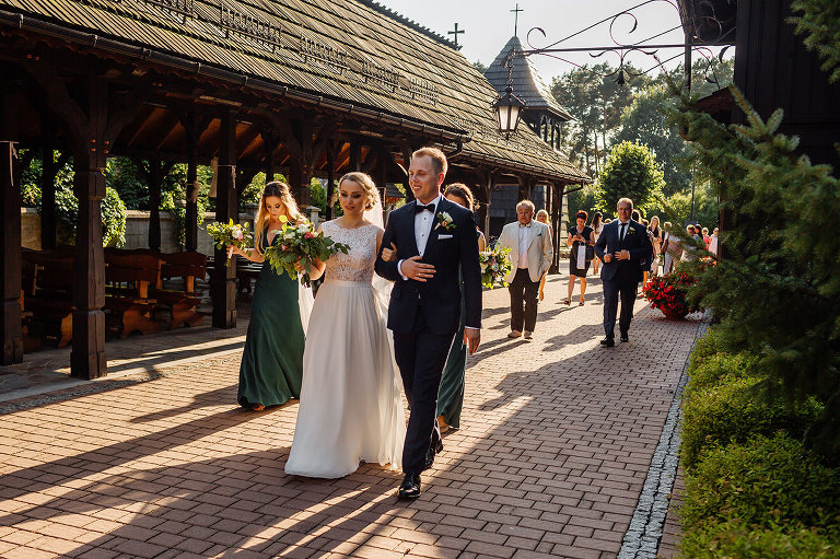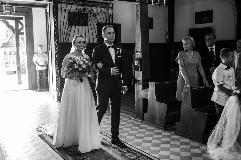 Do uroczego, drewnianego kościółka w Jedlni Letnisko, Młoda Para przyjechała czarnym, zabytkowym mercedesem, który wcześniej przystroili z pomocą świadków. Wokół świątyni powoli zaczęli gromadzić się goście. Sama ceremonia obfitowała w wiele wspaniałych chwil. Jedną z nich była pieśń, zagrana na gitarze i zaśpiewana przez Tatę Oli.