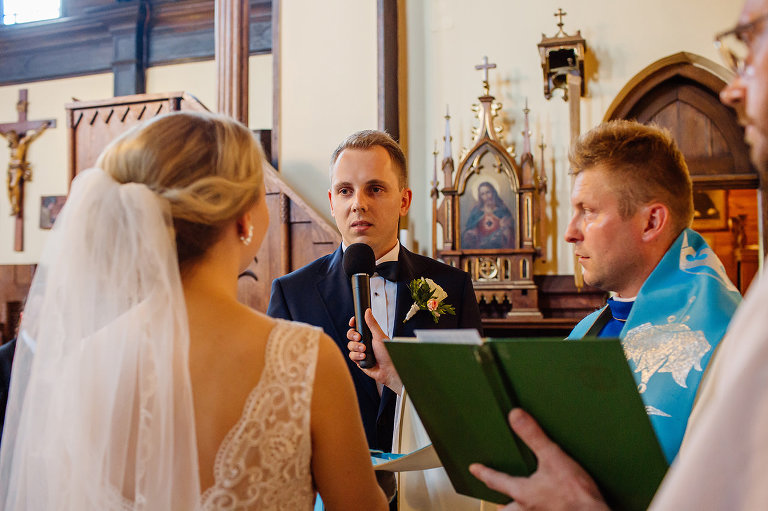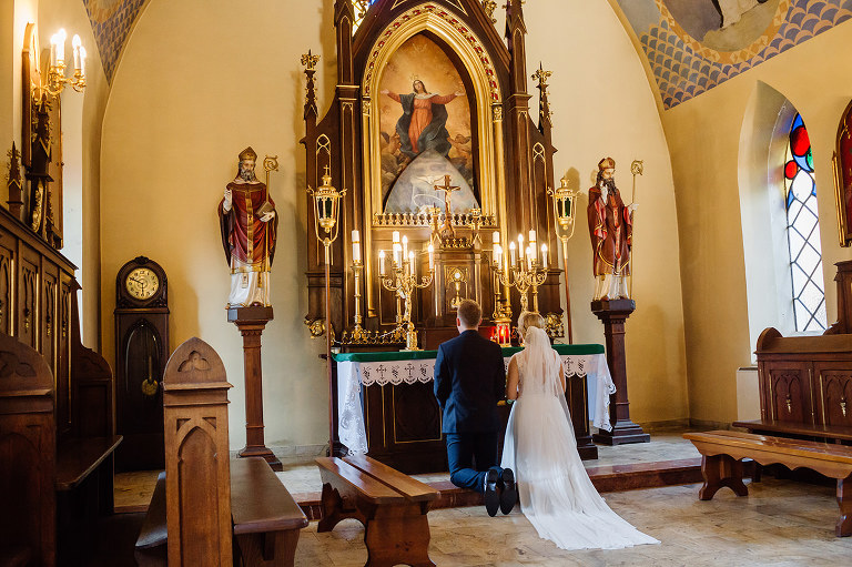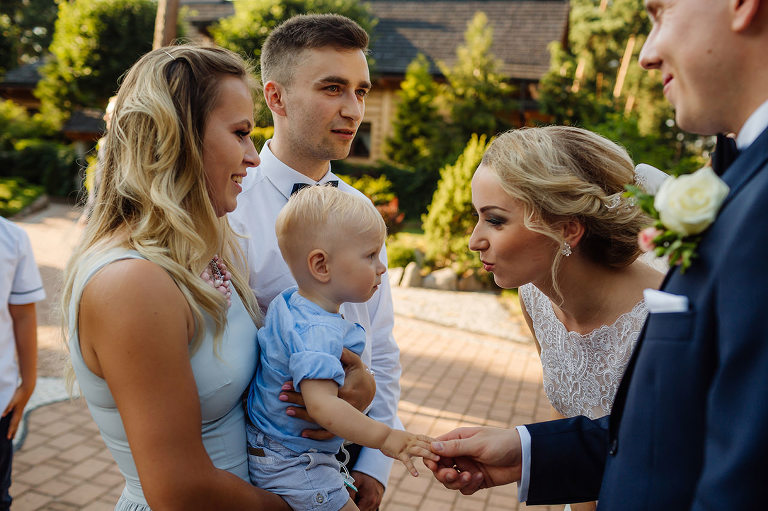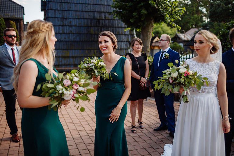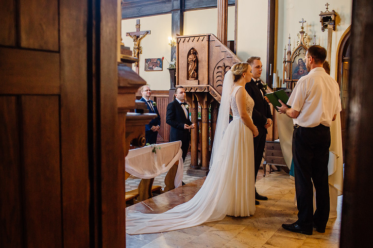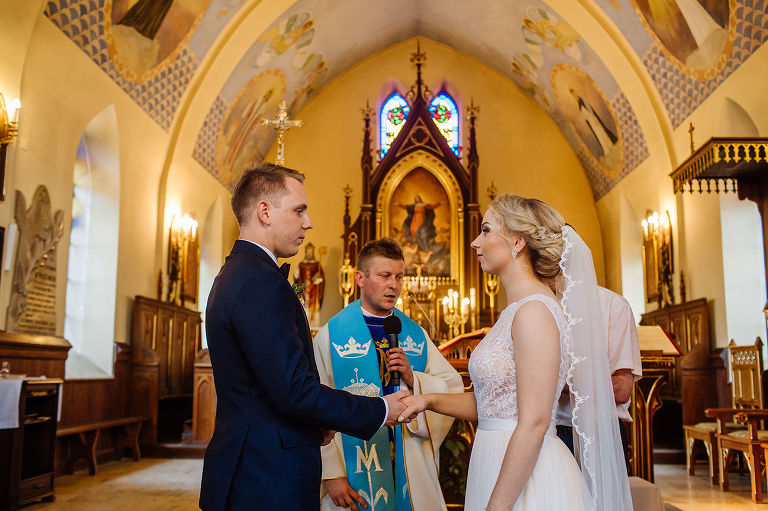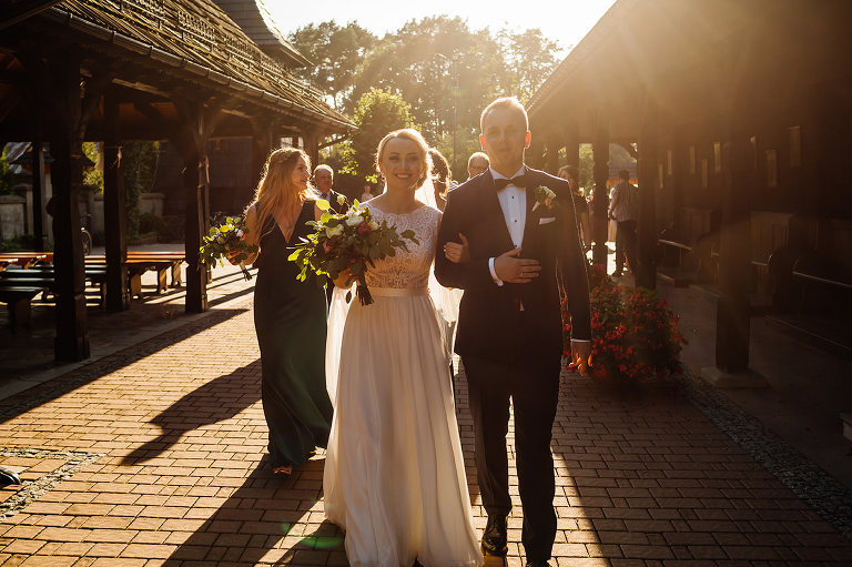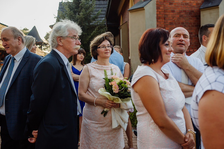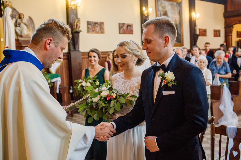 Do uroczego, drewnianego kościółka w Jedlni Letnisko, Młoda Para przyjechała czarnym, zabytkowym mercedesem, który wcześniej przystroili z pomocą świadków. Wokół świątyni powoli zaczęli gromadzić się goście. Sama ceremonia obfitowała w wiele wspaniałych chwil. Jedną z nich była pieśń, zagrana na gitarze i zaśpiewana przez Tatę Oli.