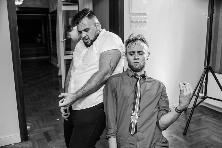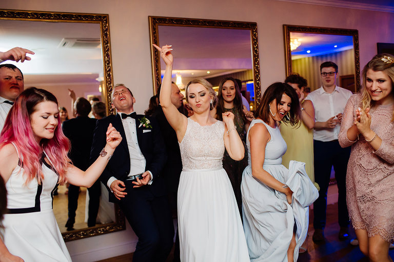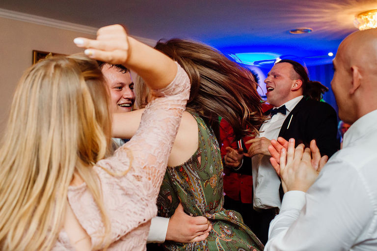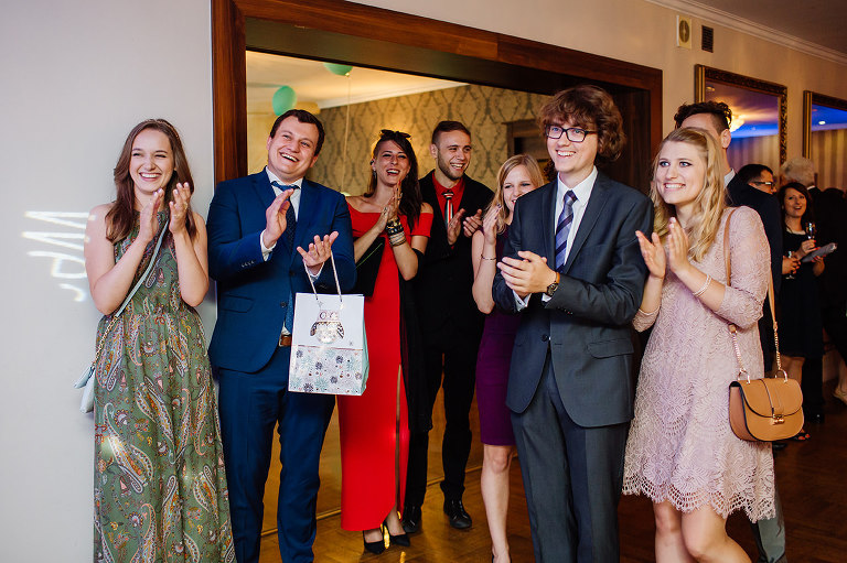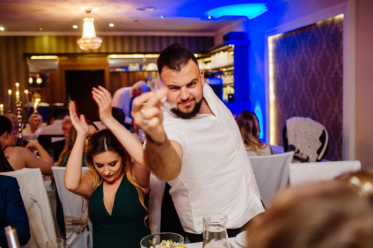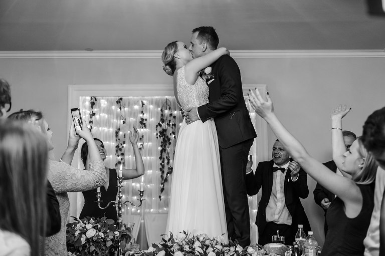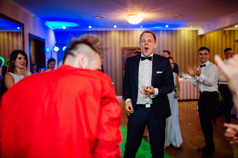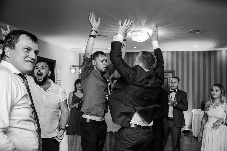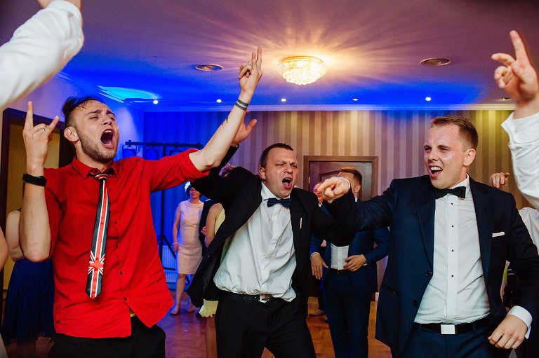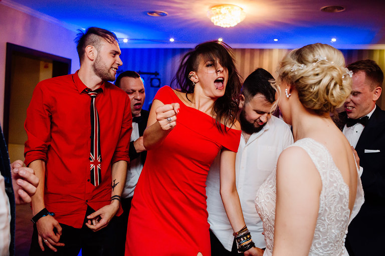 Po Mszy św., pamiątkowej, grupowej fotografii i życzeniach wszyscy udali się na przyjęcie do lokalu nieopodal. Czy zastanawialiście się kiedyś, czy da się szaleć na weselu do starych, dobrych rockowych kawałków takich kapel jak AC/DC, czy Judas Priest? Albo czy da się zorganizować rockowe wesele i sprawić, że goście będą się na nim bawić wyśmienicie i szaleć na parkiecie? Zapraszam Was do obejrzenia tego wyjątkowego reportażu, gdzie z pewnością znajdziecie odpowiedź na te pytania 😉